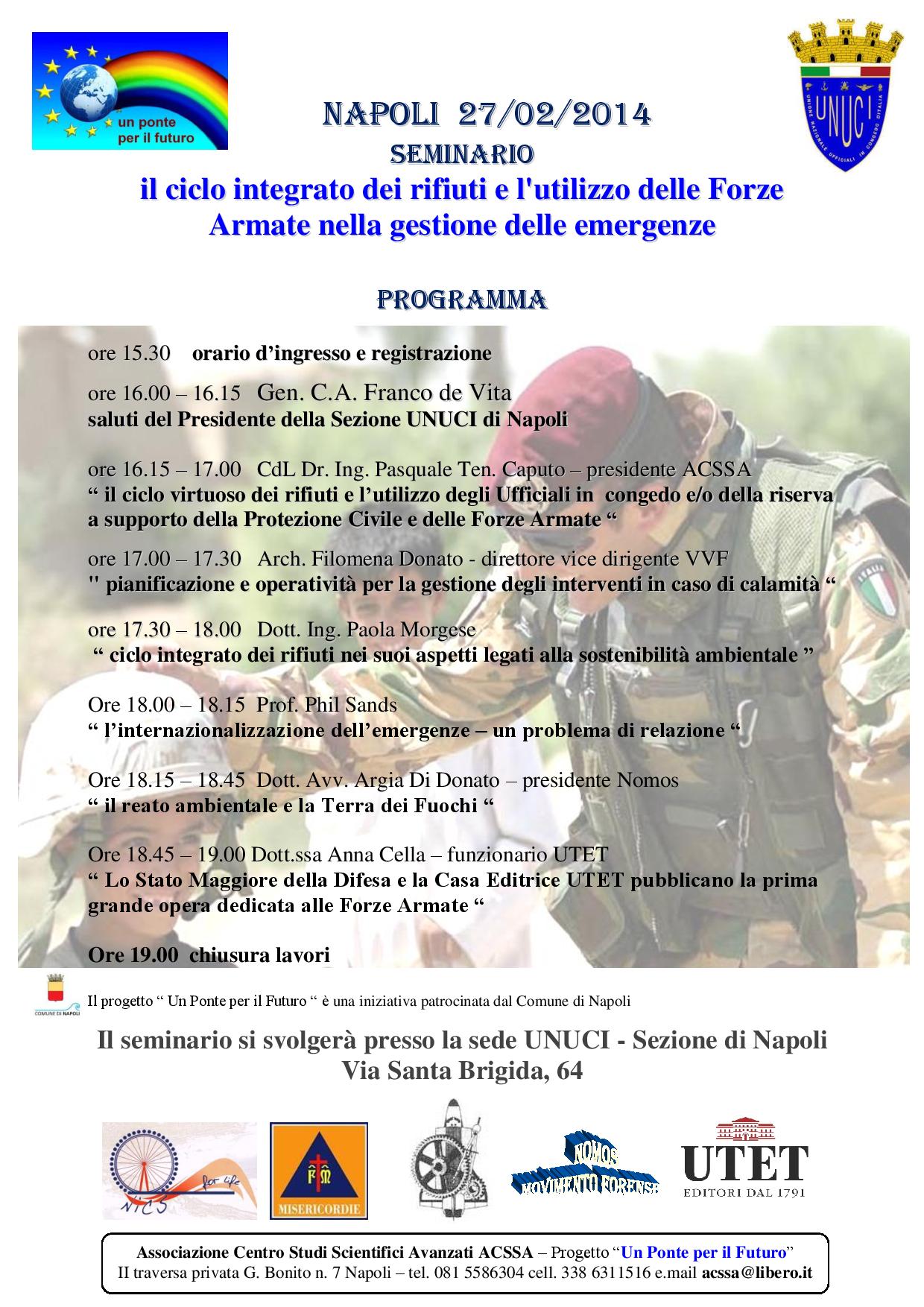Seminario: “Il ciclo integrato dei rifiuti e l’utilizzo delle Forze Armate nella gestione delle emergenze” — Napoli, 27 febbraio 2014