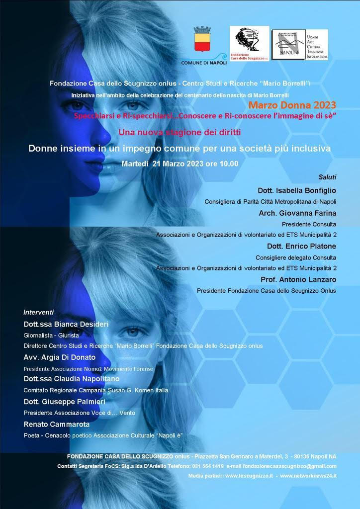 L’evento rientra nel programma Marzo Donna promosso dal Comune di Napoli “Marzo Donna 2023 – Specchiarsi e Ri-specchiarsi…Conoscere e Ri-conoscere l’immagine di sè”.